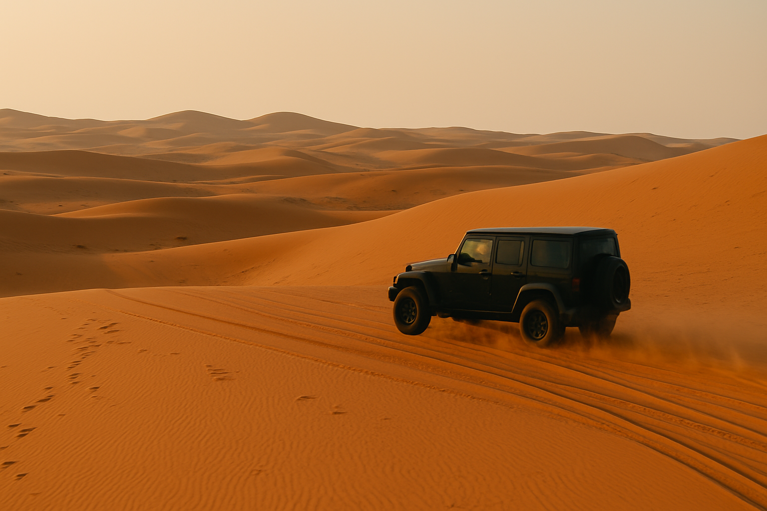 Popular choices in the UAE include the Toyota Land Cruiser, Nissan Patrol, Jeep Wrangler, and Ford Raptor — all proven off-road performers.